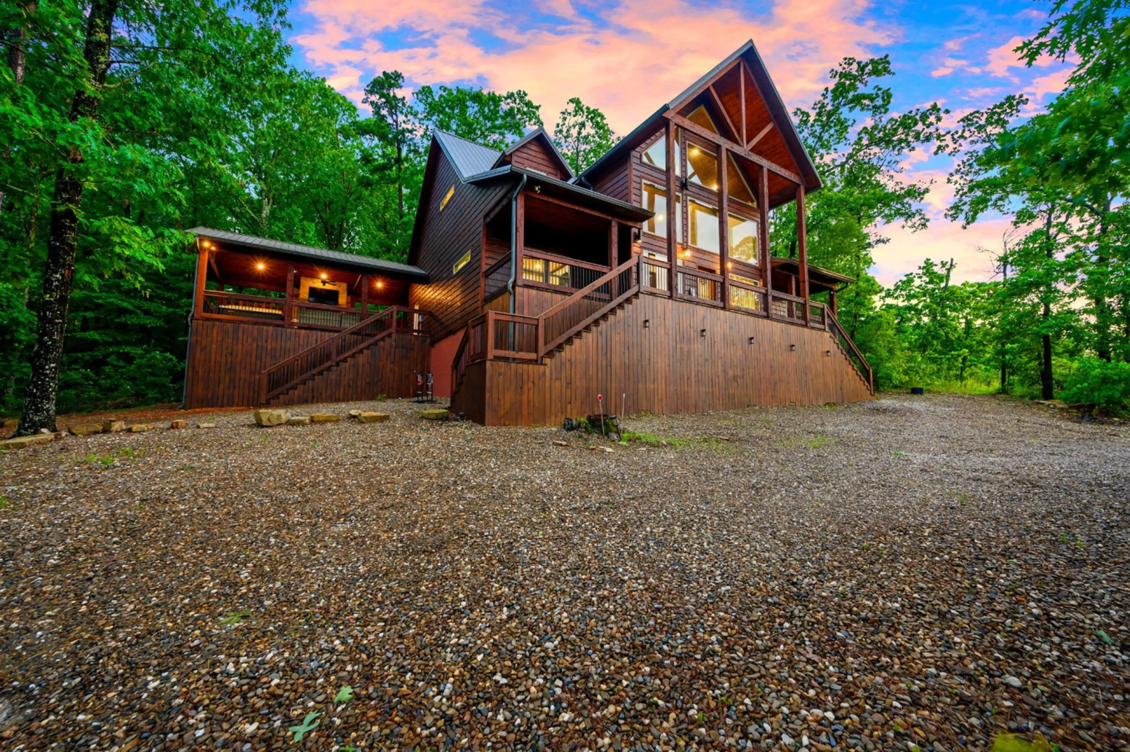 Escape to Pour Me, a luxury Broken Bow cabin in Hochatown sleeping up to 12. Perfect for families and groups, this stylish retreat features 3 king suites, a bunkroom with 6 trundles, private hot tub, fireplace, fully stocked kitchen, and outdoor games like cornhole and giant Jenga. Enjoy Smart TVs, ...
